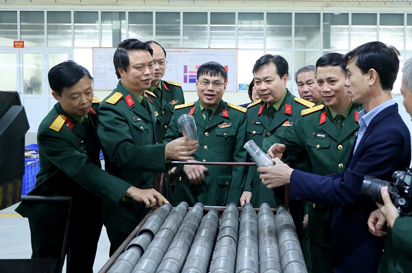 Đoàn cán bộ các cơ quan, đơn vị thuộc Quân ủy Trung ương, Bộ Quốc phòng xem sản phẩm quốc phòng do Nhà máy Z131 nghiên cứu thiết kế, chế tạo (tháng 3/2023). Ảnh: TUẤN MINH